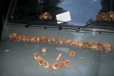 It began one evening; three resourceful students were spotted acting suspiciously, doing what can only be described as a ‘naughty run’ – a bit like a cartoon burglar. Their ammo gathering foray was quickly cut short though by a pincer movement by Nick and Tom, but not before a jumper, sleeves tied to form a bag, full of pine cones had been collected.