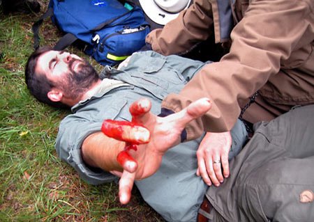 An excellent selection of staff and student photos are now available to view in the Woodlore Photo Galleries area for the first ever Woodlore Wilderness First Aid course, which took place earlier this month. Be warned though, they’re not for the squeamish…