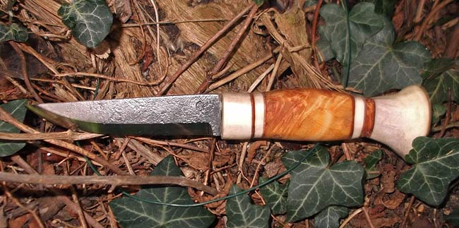 I finished the handle for my Julius Pettersson Knife Blade a couple of weeks ago, and thought I would share the results. I took the knife out for the weekend and it’s a real step up from my Mora Clipper Knife. It’s the traditional Saami design with antler and birch bark spacers, however I used Alder root instead of curly Birch for the wood.
