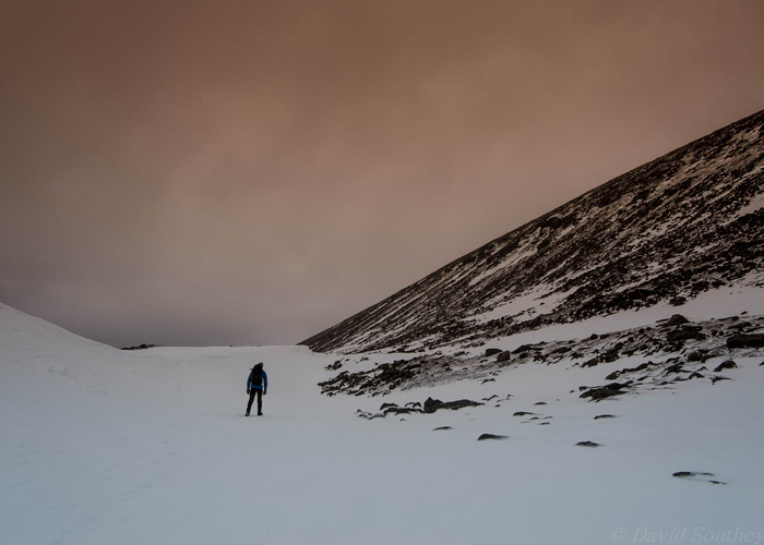 We scouted a suitable site for the snow holes; the westerly winds had dumped large banks into any leeward slope.