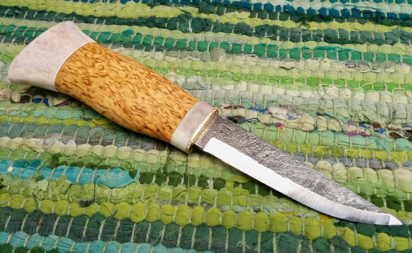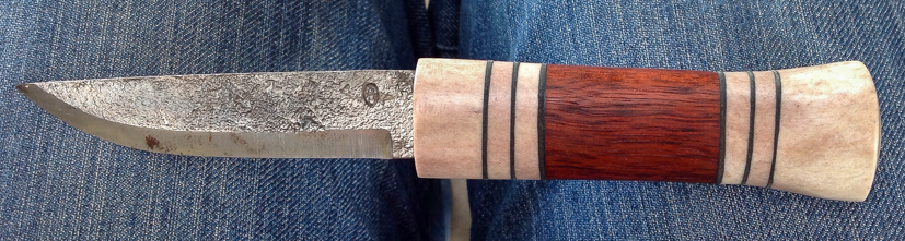 “I set about making my own handle and used some antler sections and a block of curly birch. It’s the first knife I’ve made, so I took it slowly and had some expert help, but I’m really pleased with the result and it works perfectly for me. At the moment I’m making a Sami-style sheath for it and I’m looking forward to using it for years to come!” – Elisabeth Anderson